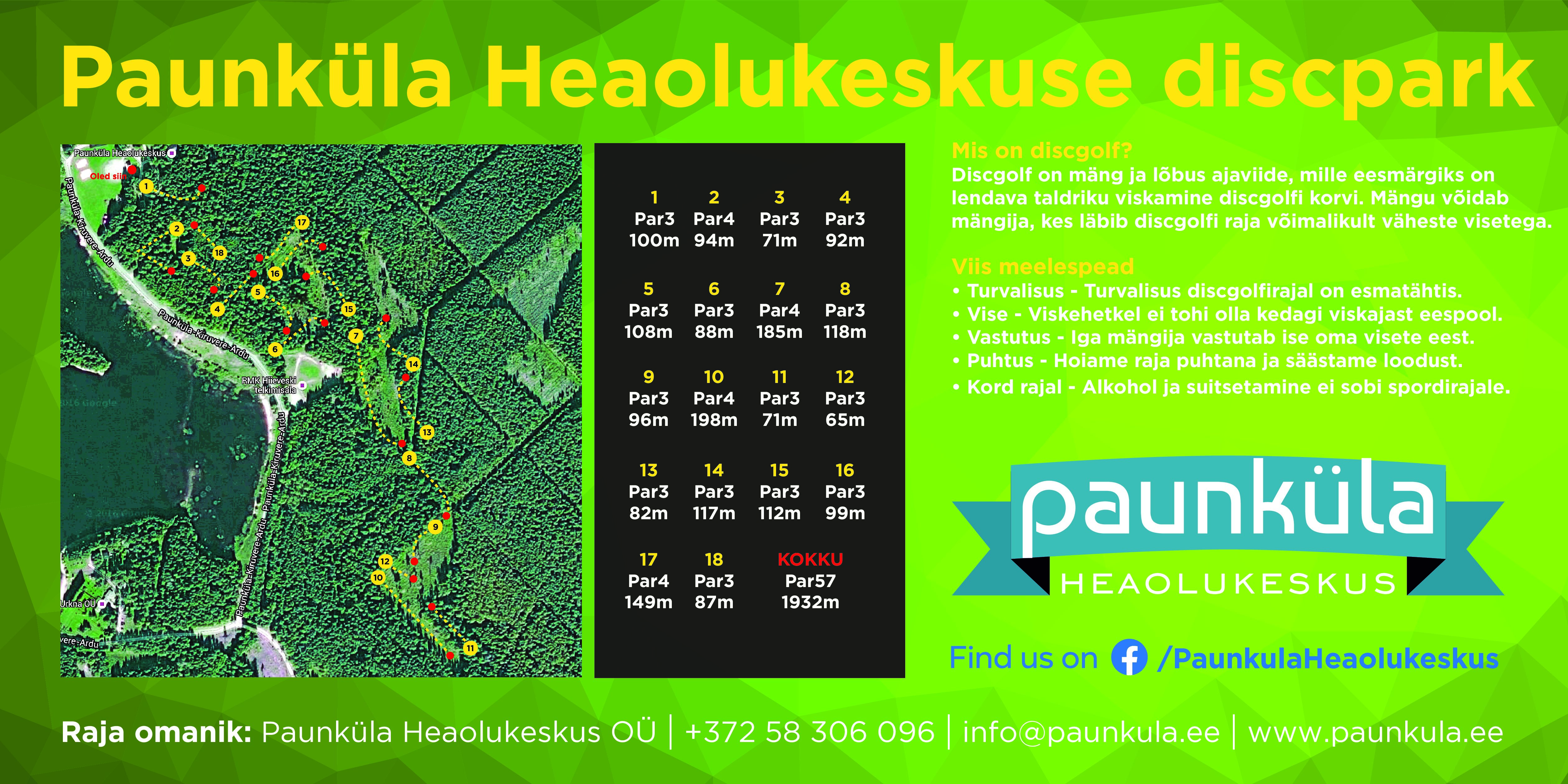 Meie 18-rajaga Paunküla discgolfi rada on avatud kõigile! Sobib nii esmakordsetele mängijatele kui ka kogenud harrastajatele.